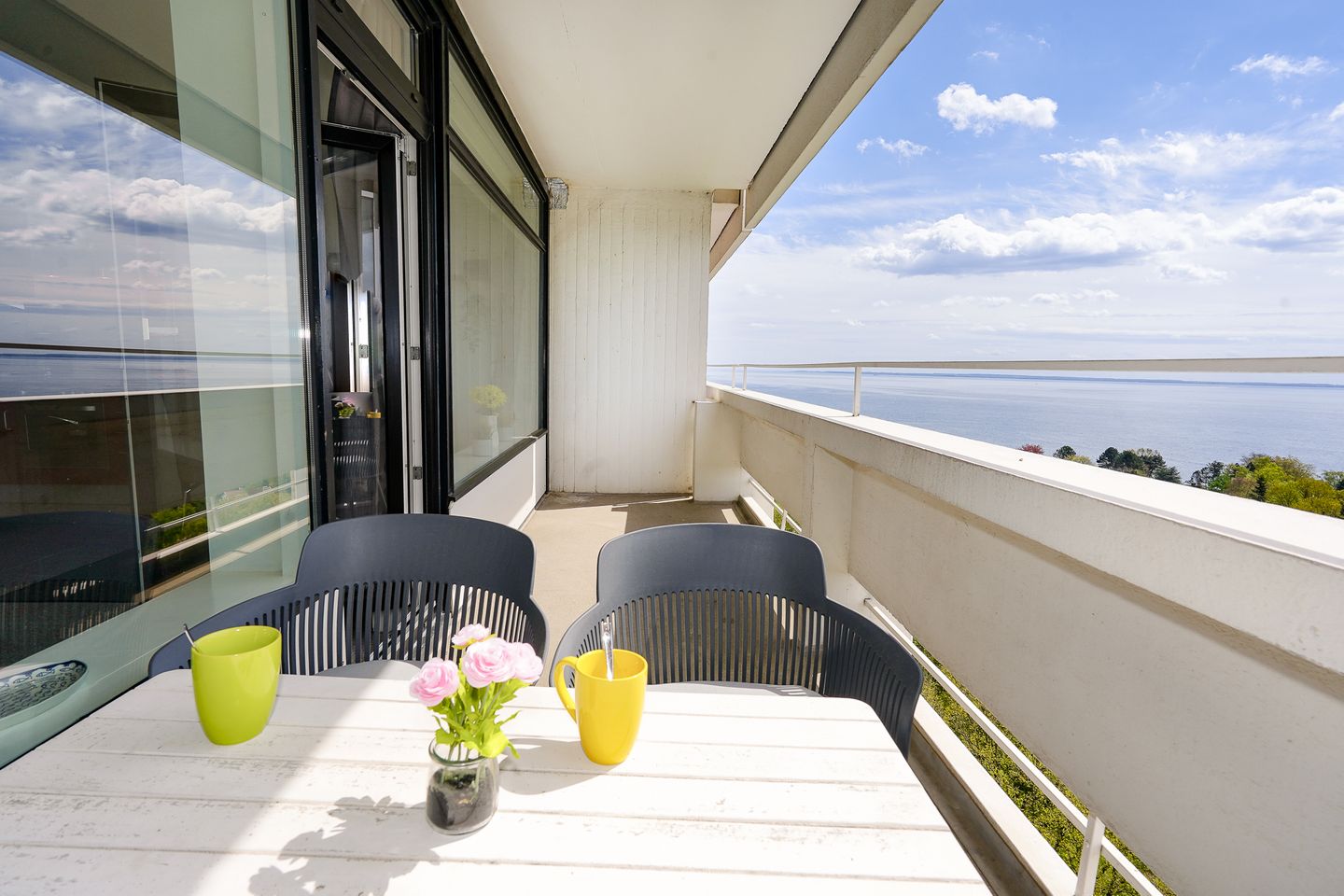 Mit Traumblick über die Ostsee den Urlaub bei einem Kaffee oder Gläschen Rotwein genießen, ein schöne Vorstellung.