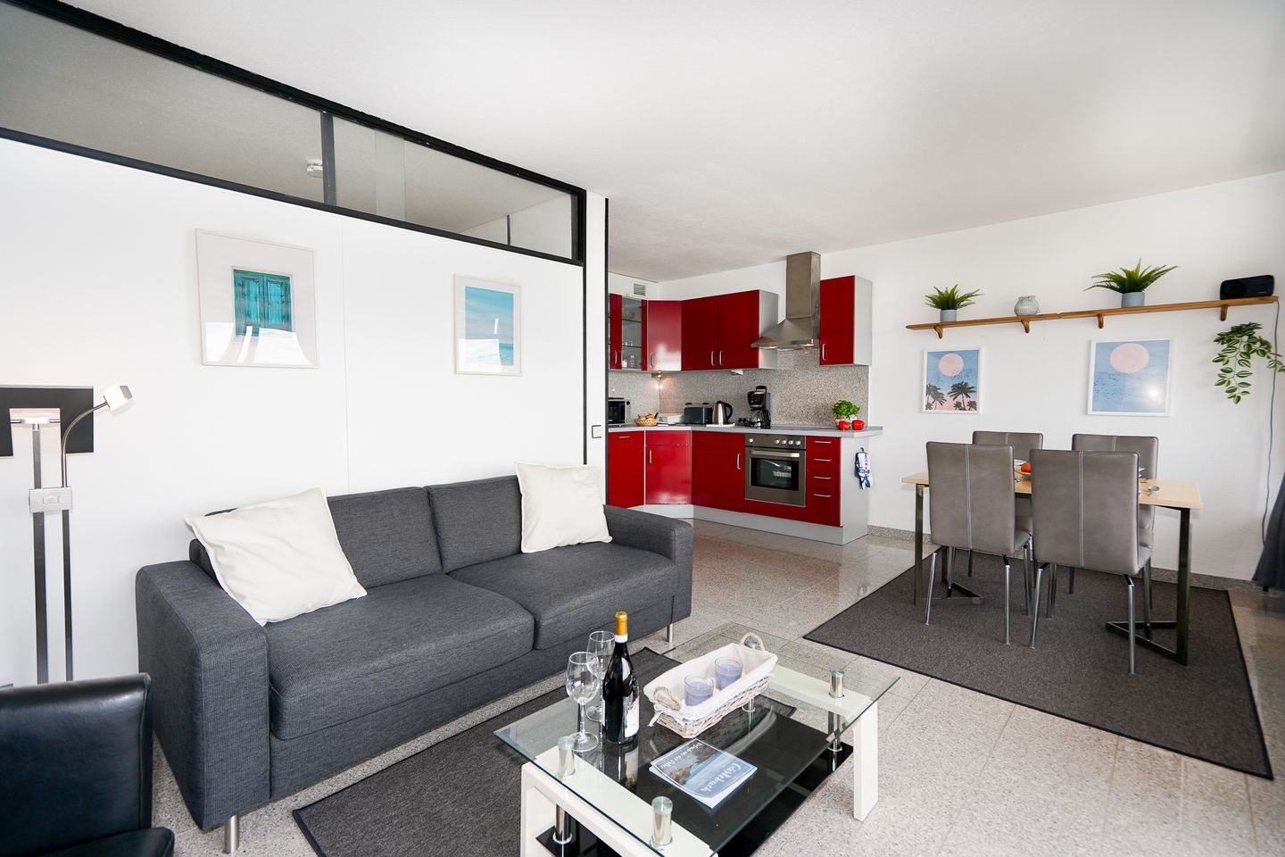 Die kürzlich modernisierte Wohnung verfügt über ein Schlafzimmer mit Doppelbett und ein ausziehbares Schlafsofa, eine moderne, offene Küche mit großzügigem Essbereich sowie ein modernes Badezimmer mit Dusche.