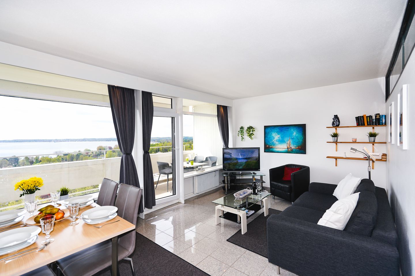 Gourmets und Feinschmeckern bietet die praktische und voll ausgestattete Einbauküche Gelegenheit, auch leckere Gerichte zuzubereiten. Der Balkon mit Traumblick über die Lübecker Bucht ist mit wetterfesten Möbeln eingerichtet. Ein großer Flachbildfernseher gehört ebenfalls zur Einrichtung der Ferienwohnung.
